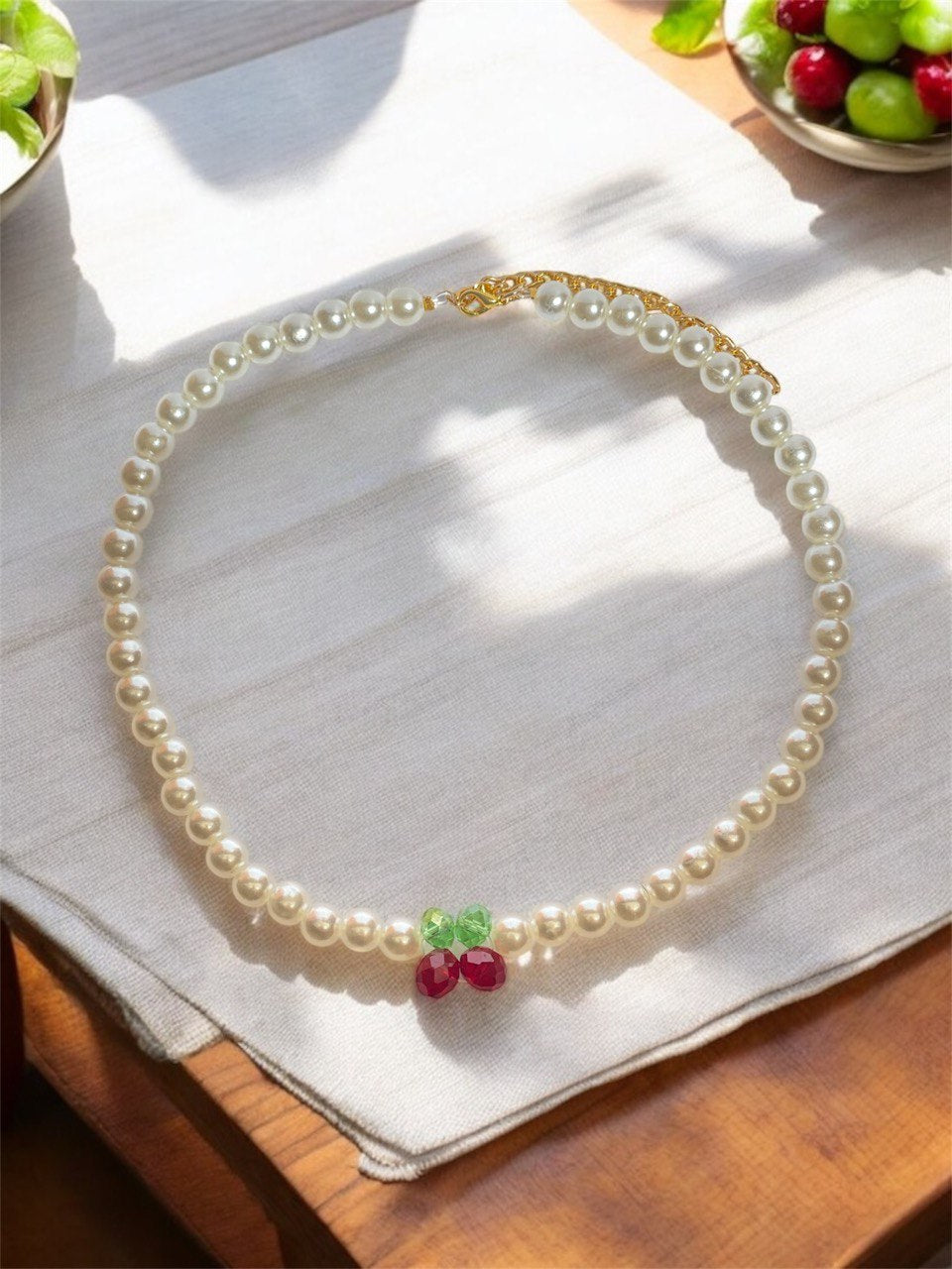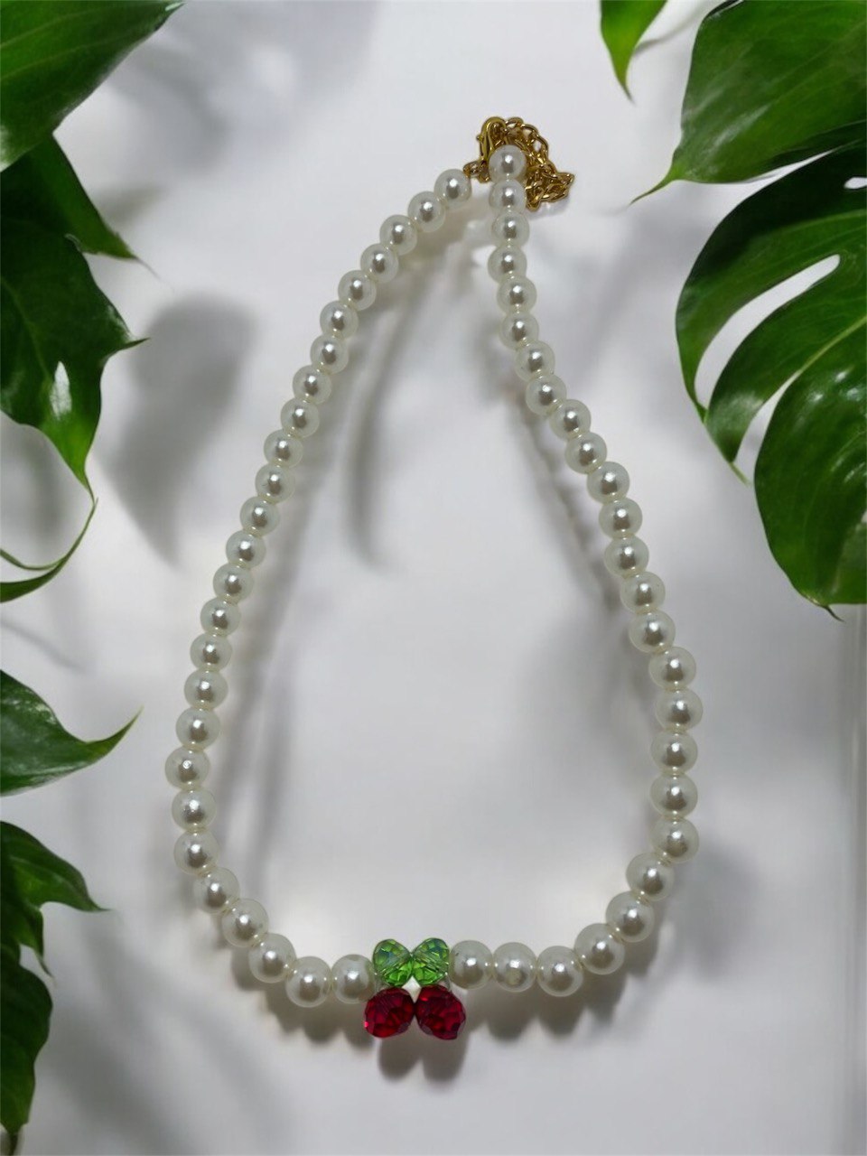 Inspirado en la dulzura natural y la elegancia atemporal, el collar Classic Cherry une la delicadeza de las perlas 🤍 con el encanto vibrante de una pequeña cereza 🍒 hecha a mano con cuentas de cristal en tonos rojo y verde. Cada detalle está cuidadosamente elaborado para transmitir una sensación de frescura, feminidad y alegría.🌸
