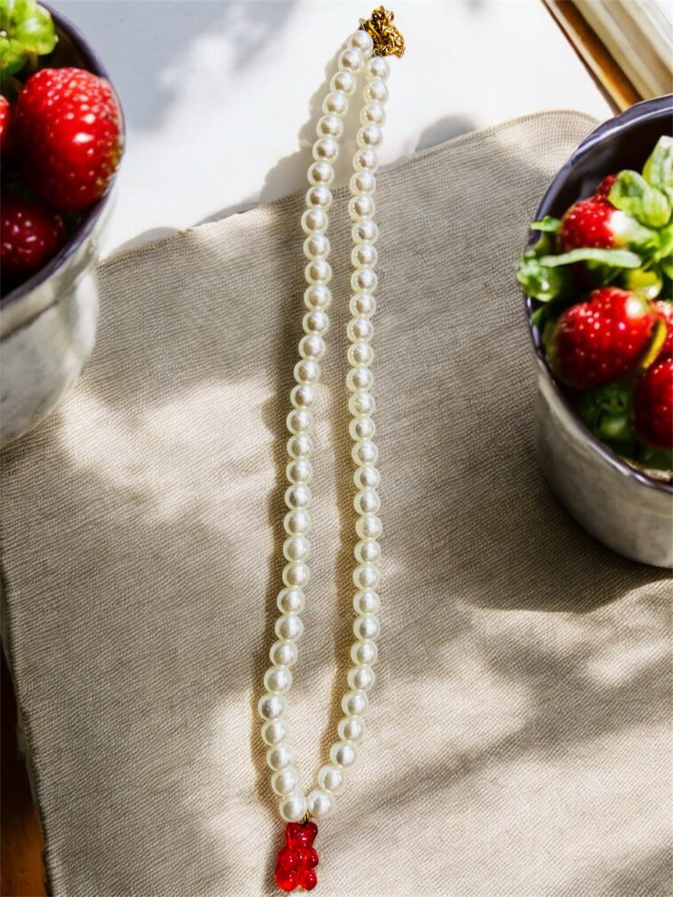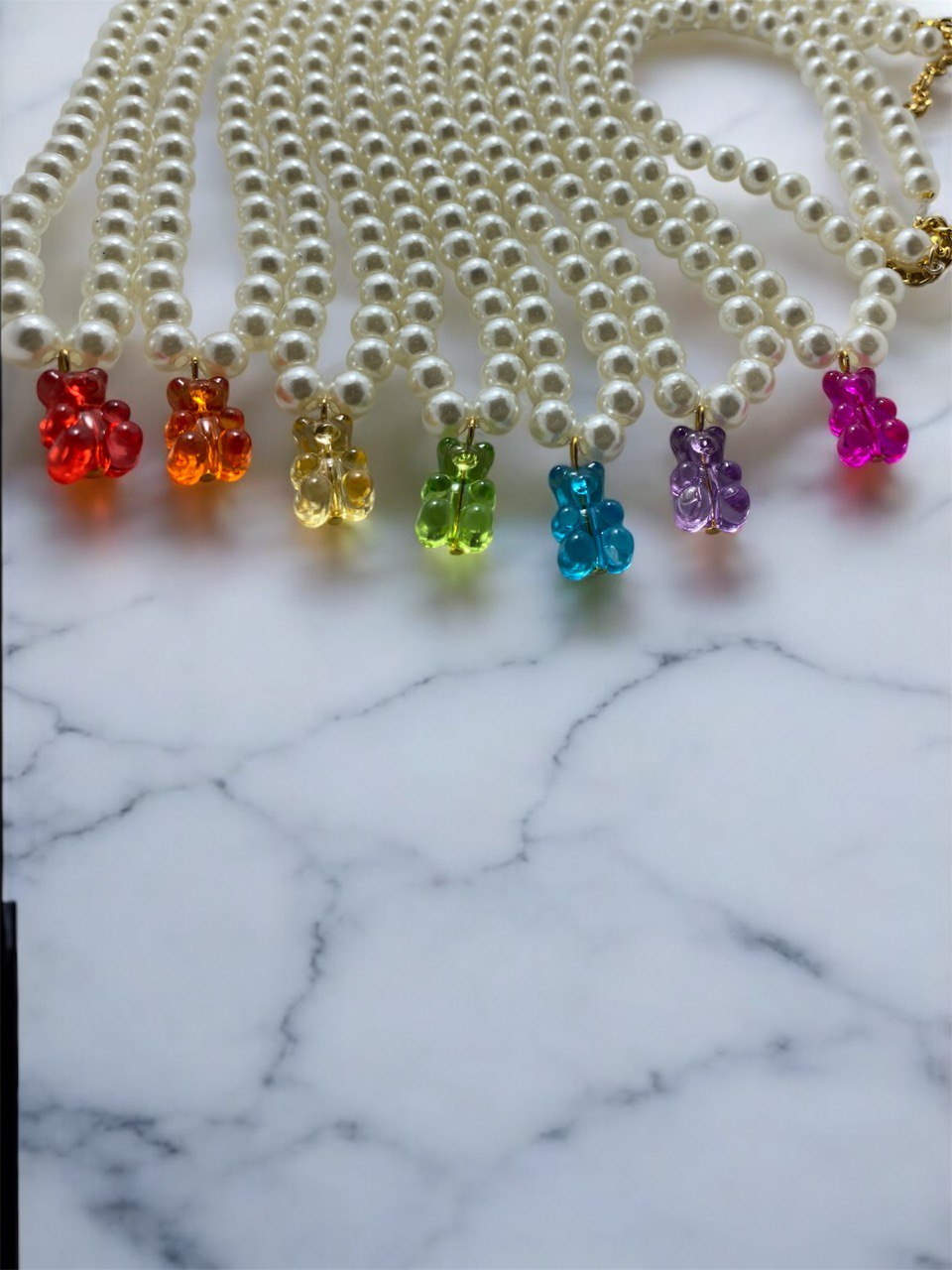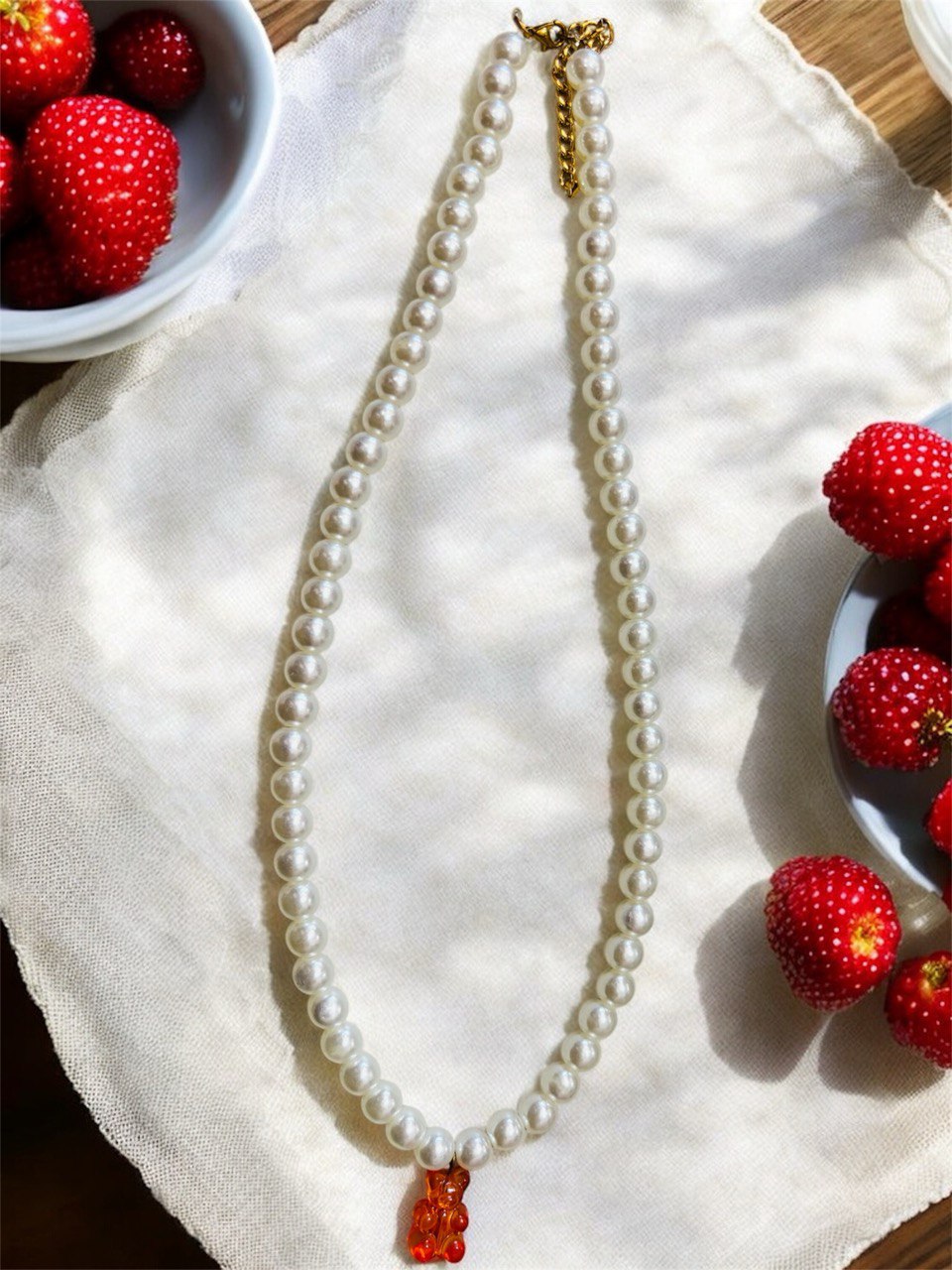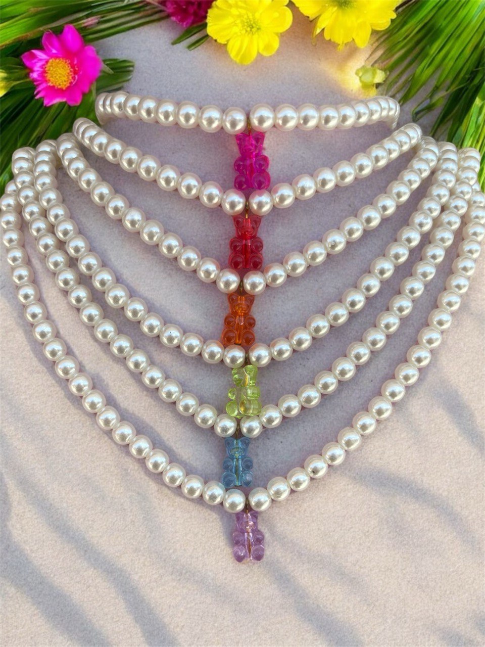 ¡Descubre la dulce elegancia con nuestro collar de perlas con un toque adorable! 🐻💖 Tranforma tu look clásico con un toque de diversión con nuestro encantador dije de osito gominola! 🍬✨ Ya sea para una ocasión especial o para darle un toque único a tu outfit diario, este collar es la opción perfecta