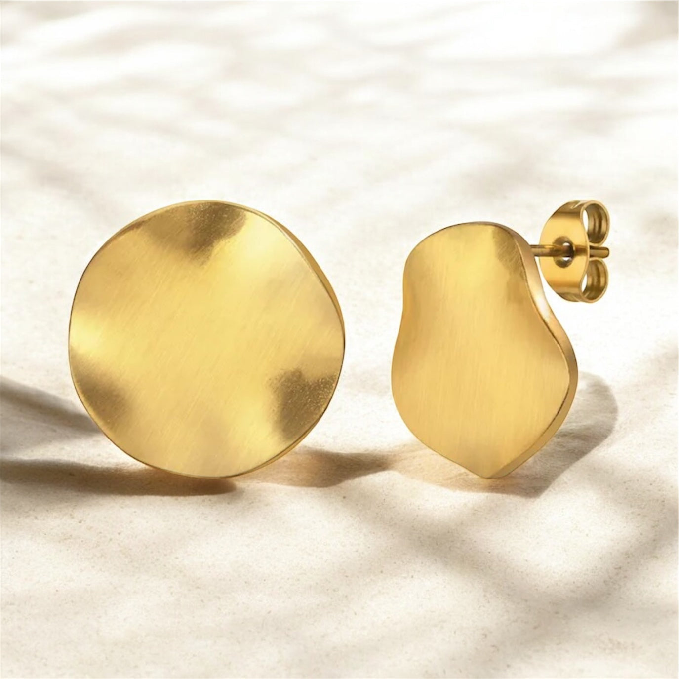 Mini aretes dorados con acabado satinado y forma orgánica. 💛✨ Minimalistas, elegantes y perfectos para uso diario. 🌼 Su brillo mate aporta un toque moderno sutil. 🌟 Ultra cómodos y ligeros. 🤍 Ideales para quienes aman lo discreto pero con estilo sofisticado. 💫