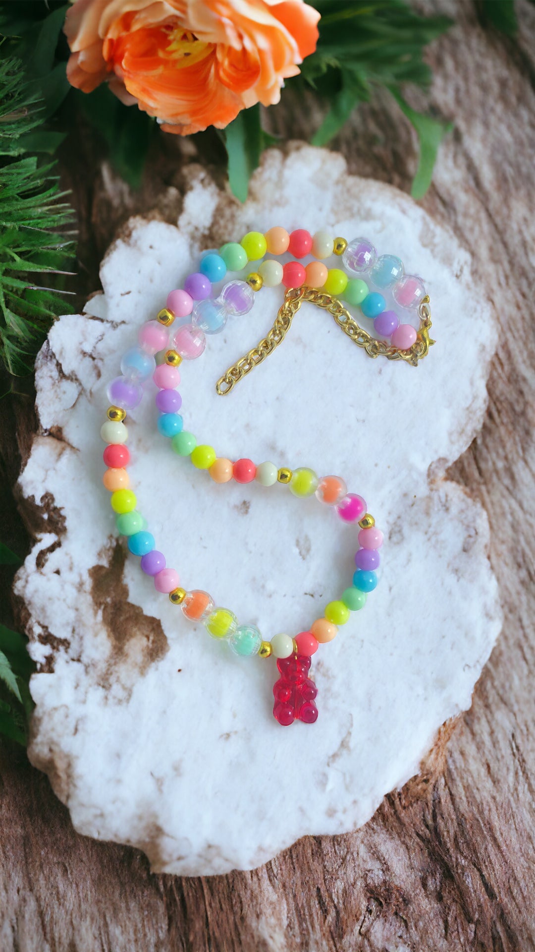 Este divertido y colorido accesorio combina la diversión del arcoíris con la dulzura de un osito gominola, creando un look que destaca entre la multitud con su encanto único. ✨🍬 🌈🐻💖
