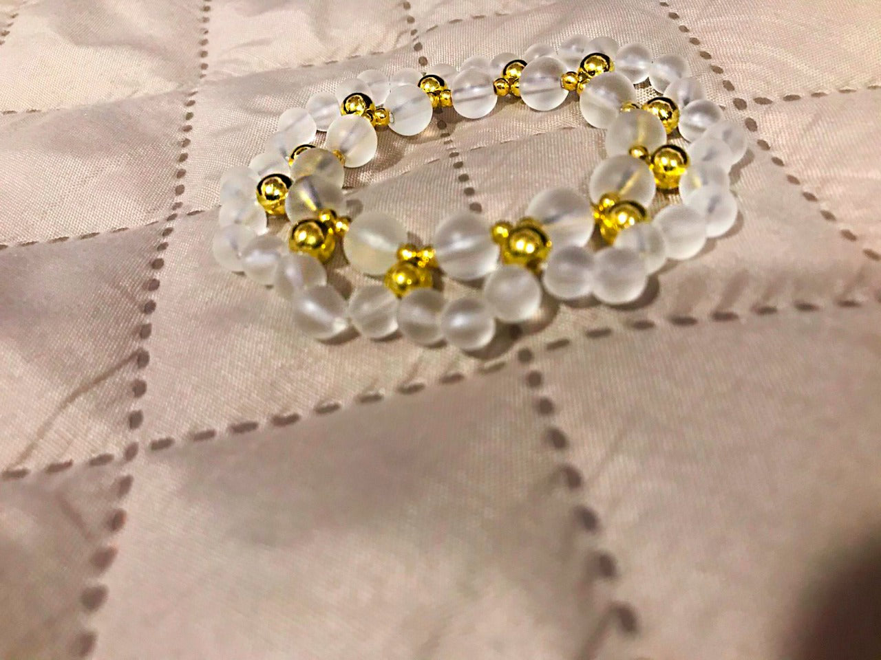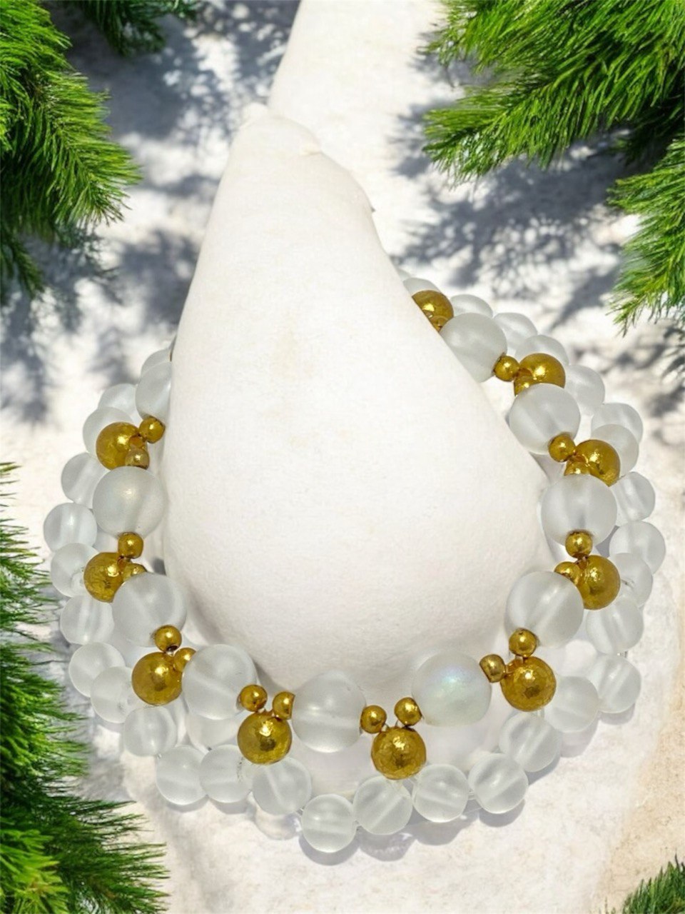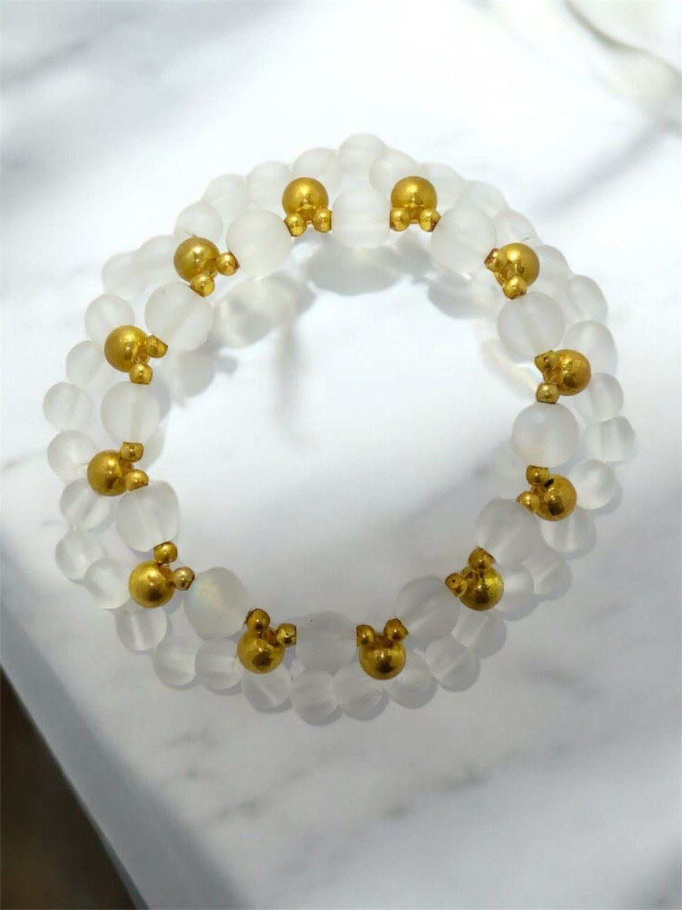 Pulsera de cristal templado y metal de aproximadamente 17 cm de largo en combinación de dos colores.