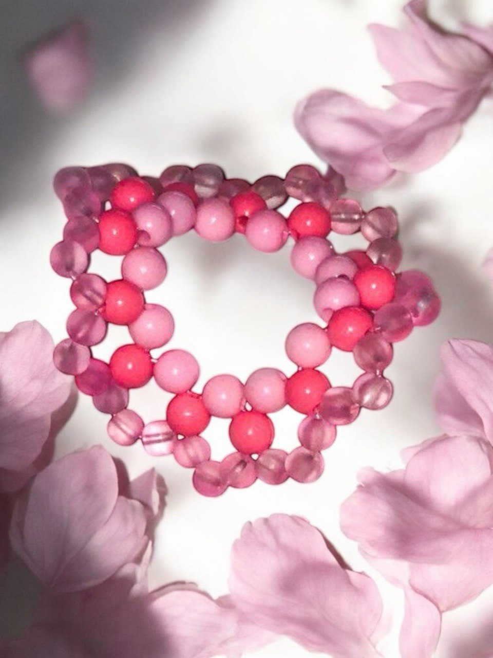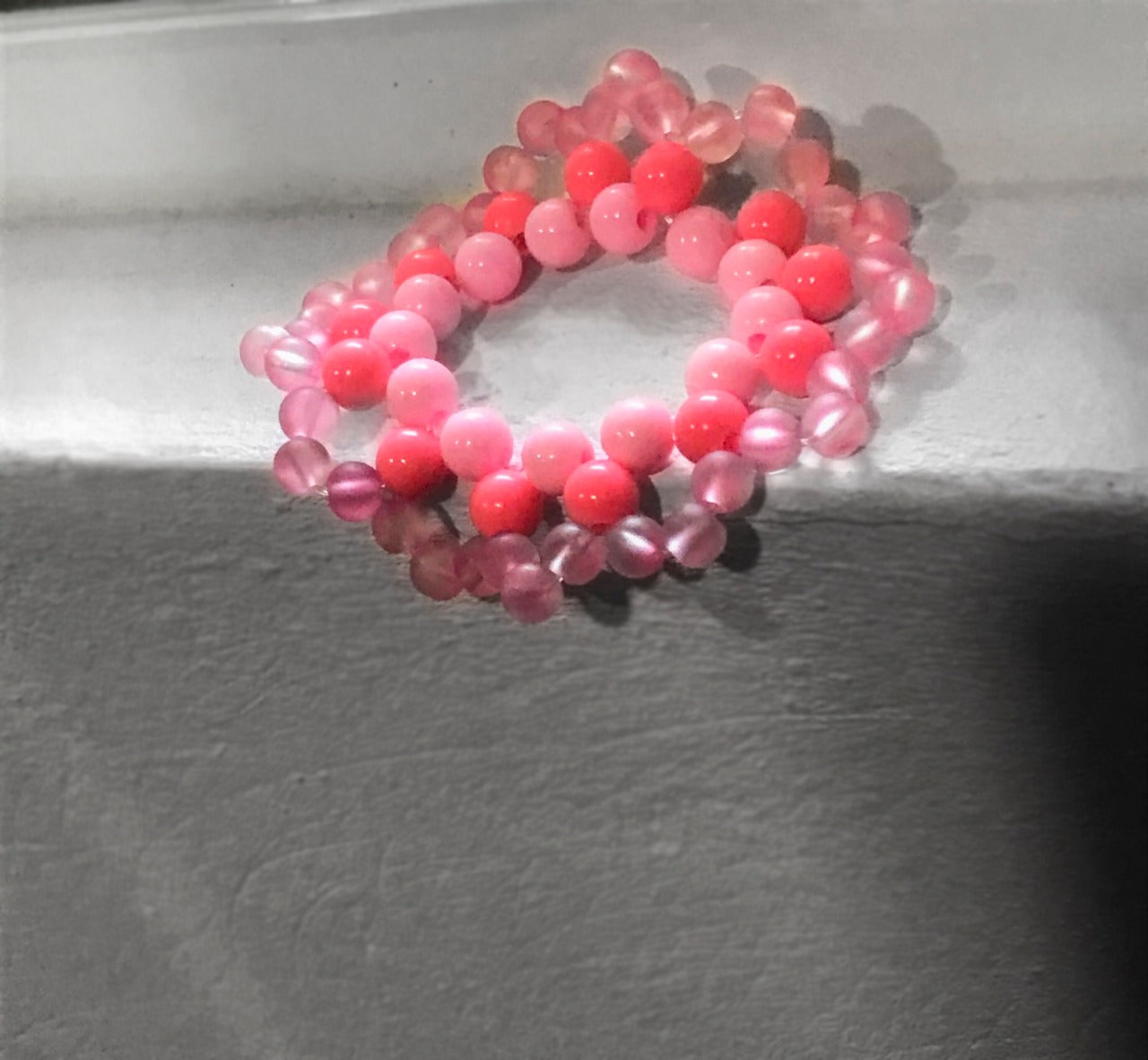 Pulsera de plástico y cristal templado de aproximadamente 18 cm de largo en combinación de subtonos rosa.