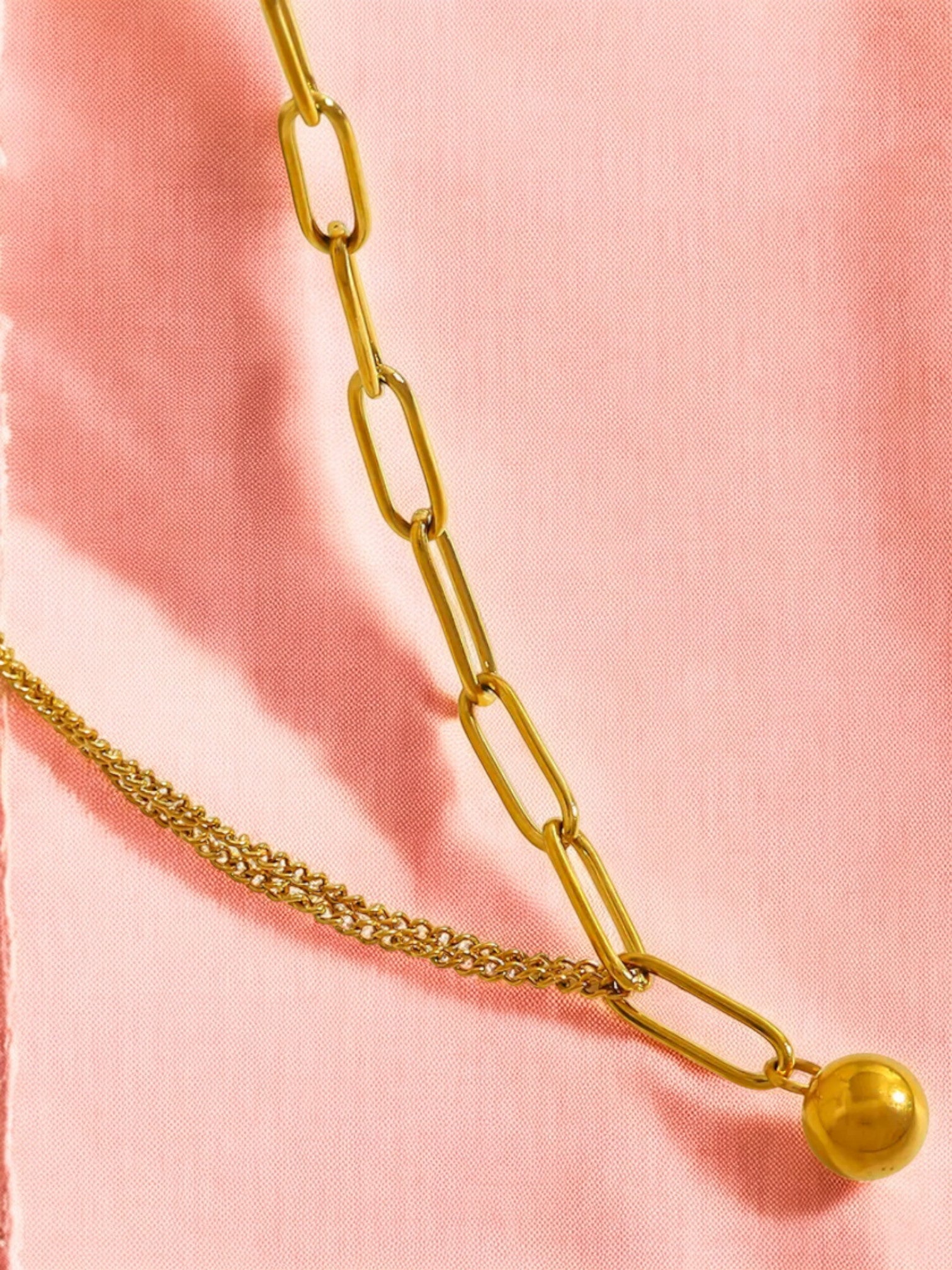 Un set doble de cadenas doradas para un layering perfecto. ✨💛 Moderno, elegante y con textura sofisticada. Ideal para elevar cualquier look. ⚡🌙 Combina brillo sutil con un toque bold sin perder la delicadeza. 🌼💫 Perfecto para usar juntos según tu mood. 💖🔗 Una pieza versátil y chic que complementa tu estilo diario. ✨👑
